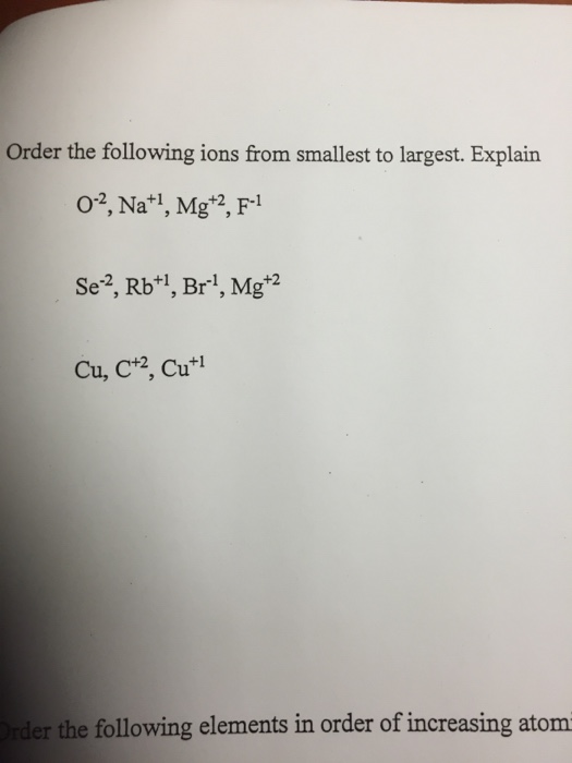 Solved: Order The Following Ions From Smallest To Largest.... | Chegg.com